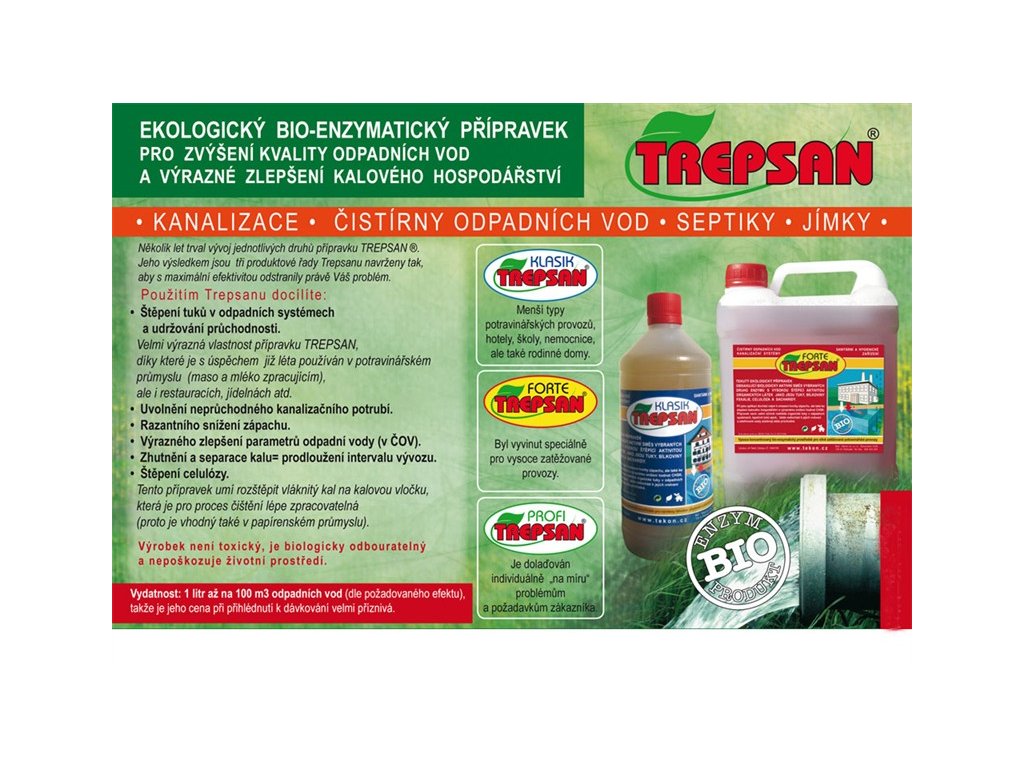TREPSAN KLASIK je produkt zesílený koncentrát směsi vybraných druhů enzymů se zvýšenou štěpící aktivitou organických látek jako jsou tuky, bílkoviny, fekálie, celulosa,...